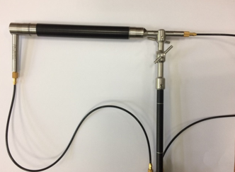 声强探头两个噪声传感器之间的距离不一样对应的噪声分析带宽也不同。本测试选用两种探头间隔安装距离,12mm的距离对应的1/3倍频程中心频率分析带宽为125Hz-6300Hz,探头如图2-3所示,100mm的距离对应的1/3倍频程中心频率分析带宽为25Hz-800Hz,探头如图2-4所示。测试结束后将两种探头得到的1/3倍频程带下的声功率级值整合,重合部分取均值,因为本半消声室截止频率为63Hz,所以最终得到的1/3倍频带范围为63-6300Hz。
